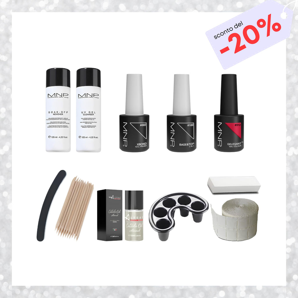 MESAUDA MNP kit Semipermanente Unghie + Smalto Gelegant Rosso Intenso ed Accessori