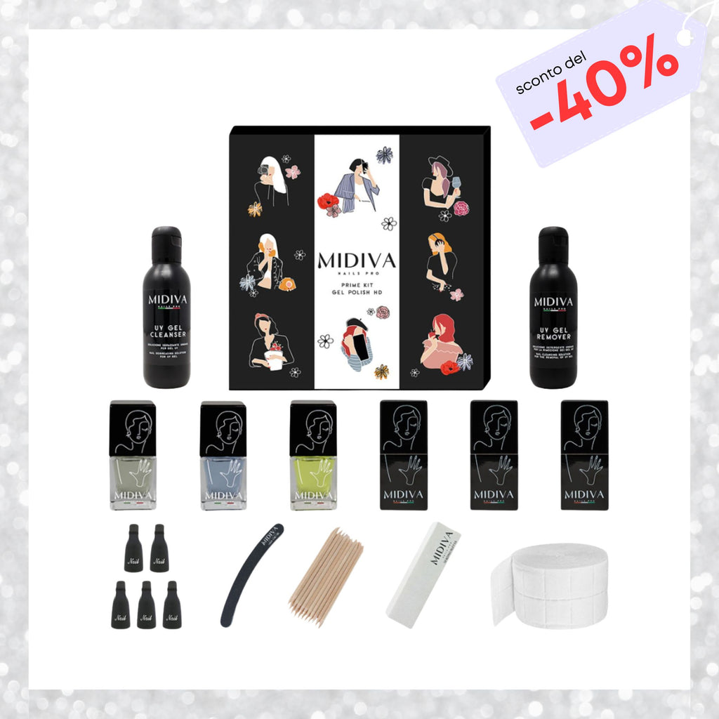 MIDIVA® Nails Pro kit Semipermanente, Set Completo Unghie "Prime" + Accessori, Made in Italy