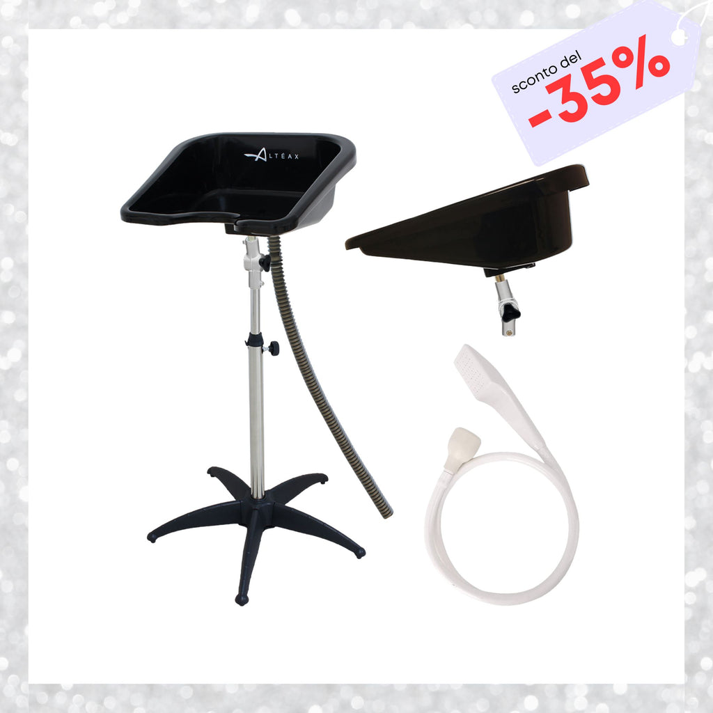 ALTÈAX Lavatesta Portatile per Parrucchieri, Inclinabile, Quadrato + Doccetta Universale