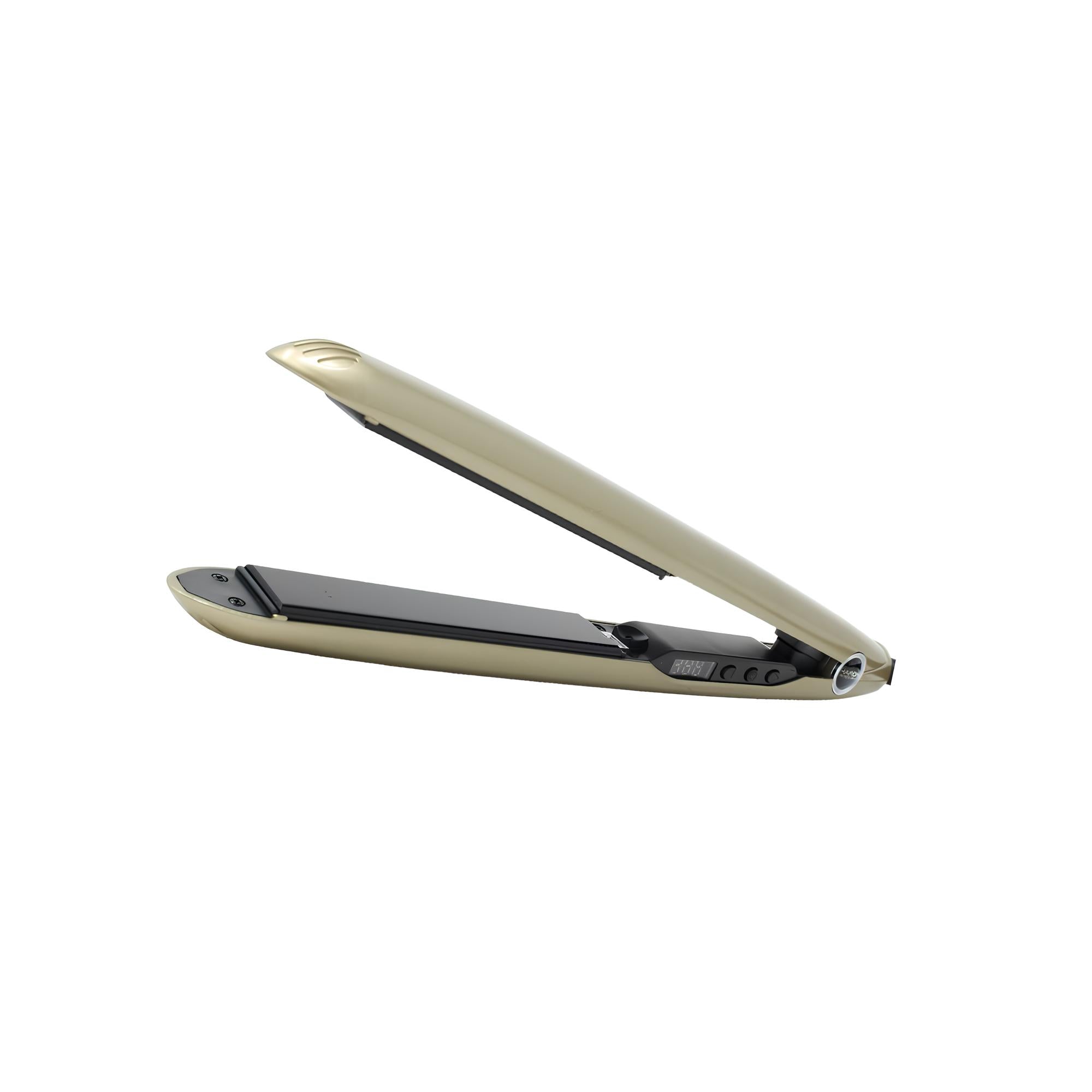 Eccezionale piastra a controllo continuo della temperatura, con microprocessore MCH, e display digitale regolabile da 120°C a 230°C, possiede un generatore interno di ioni che neutralizza la carica positiva della capigliatura eliminando tutta l’elettricità statica presente.