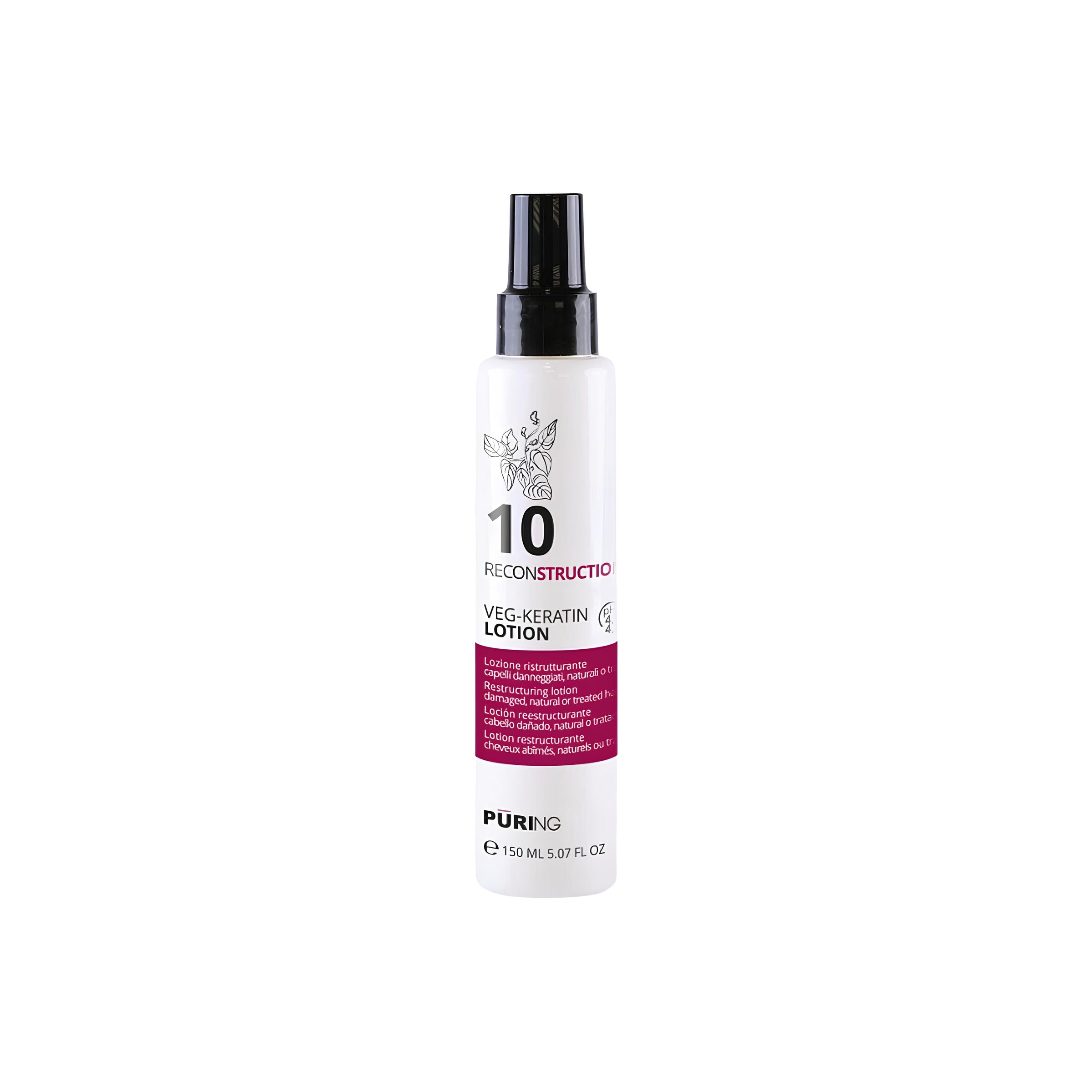 PURING Reconstruction Veg-Keratin Lotion, Lozione Ristrutturante per Capelli Danneggiati, Naturali o Trattati 150ml