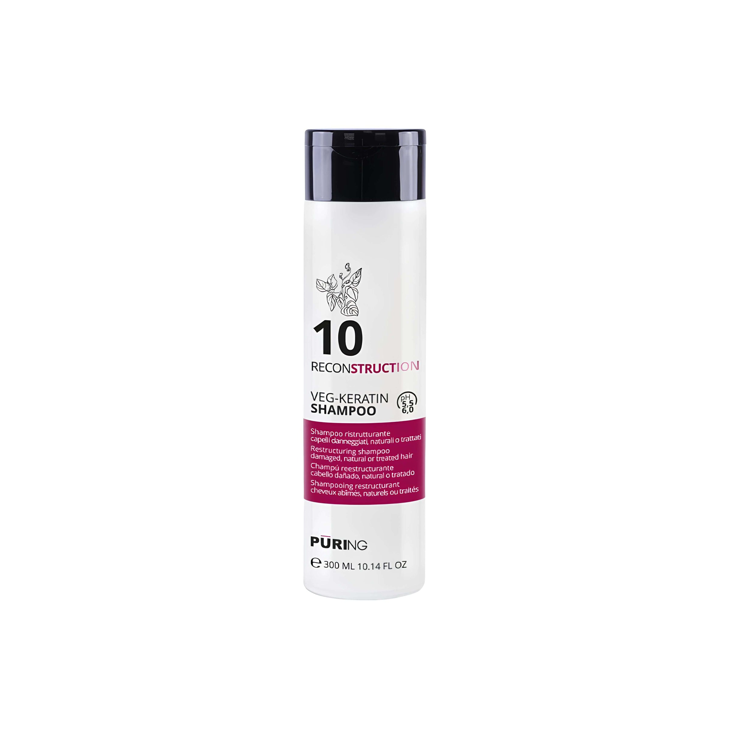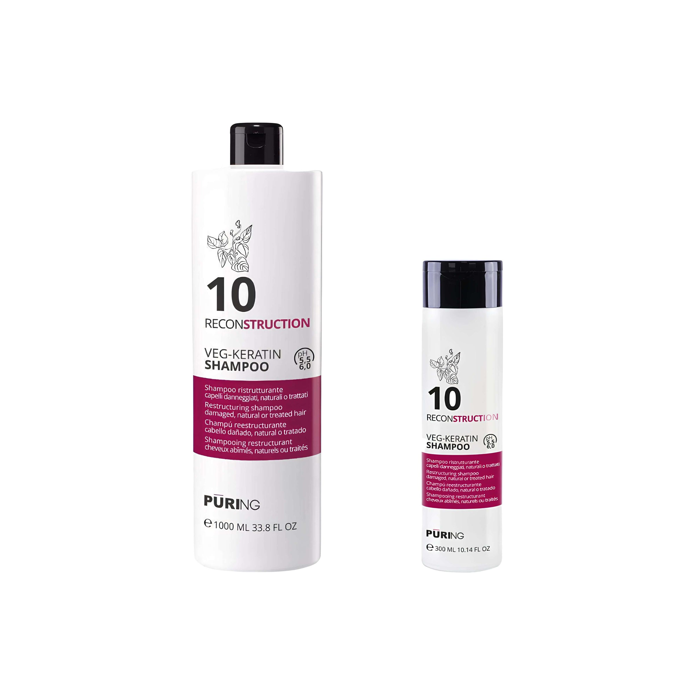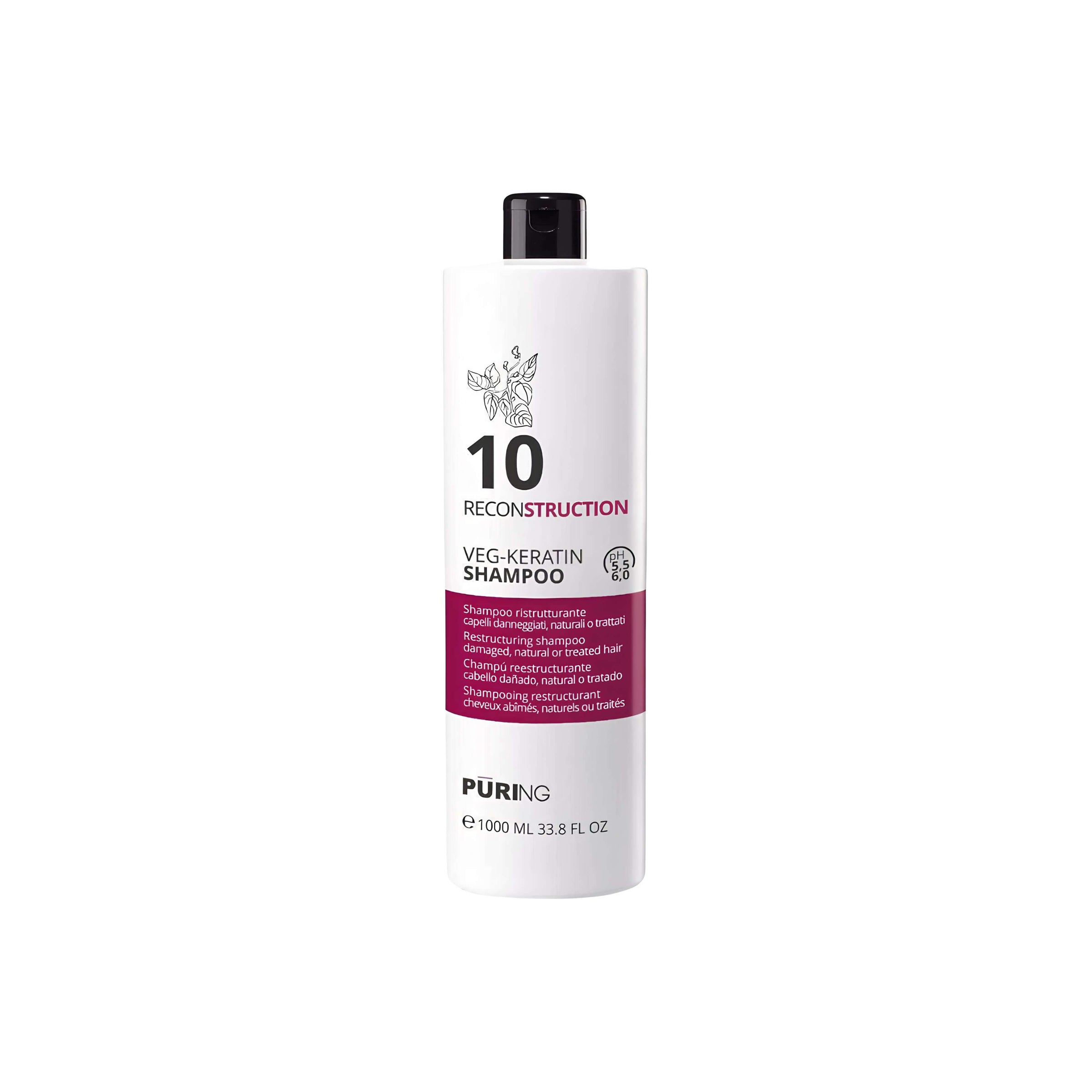 PURING Reconstruction Veg-Keratin Shampoo Ristrutturante per Capelli Danneggiati, Naturali o Trattati, Formati da 300/1000ml