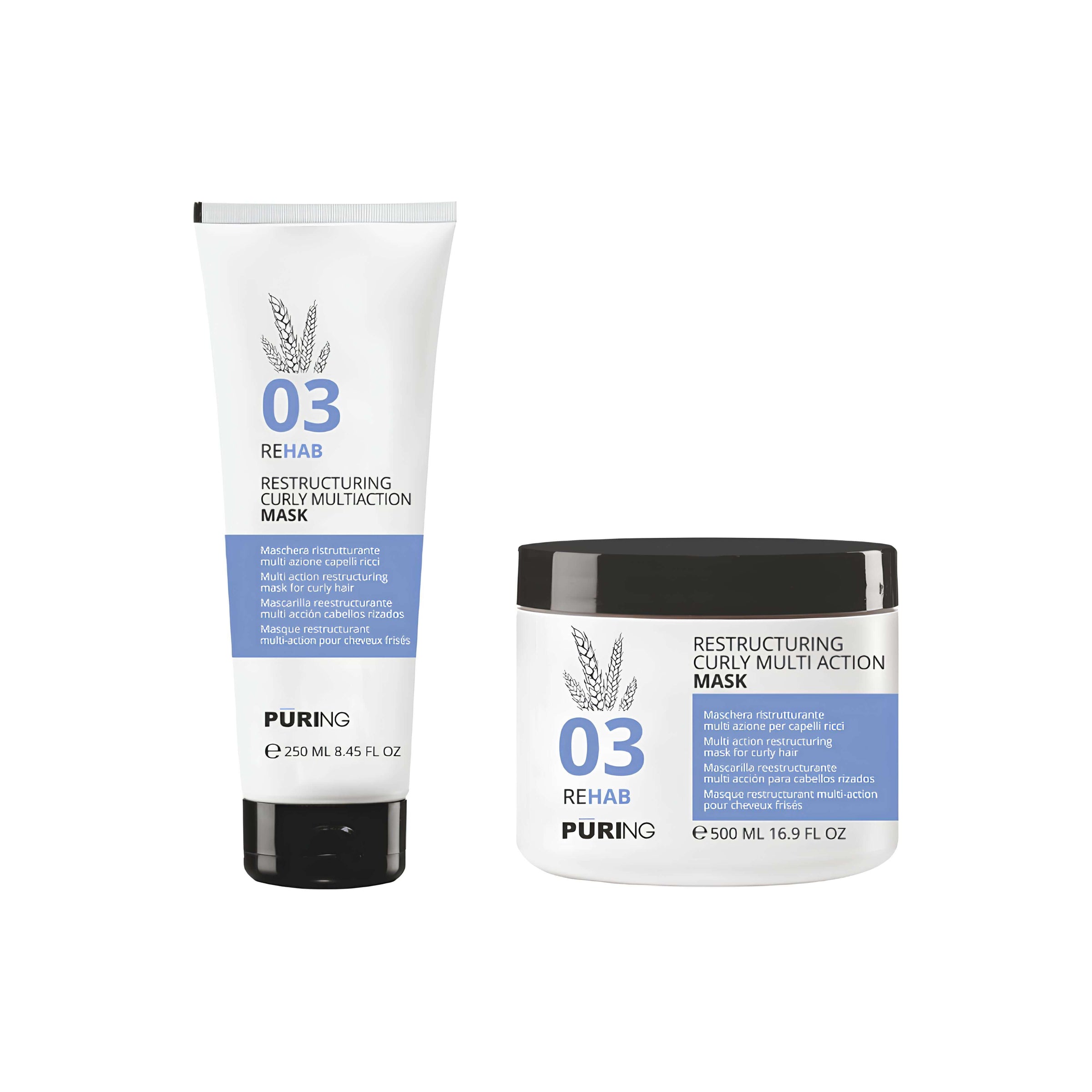 PURING Rehab Restructuring Curly Mask, Maschera Ristrutturante Multi Azione Capelli Ricci Formati da 250/500ml
