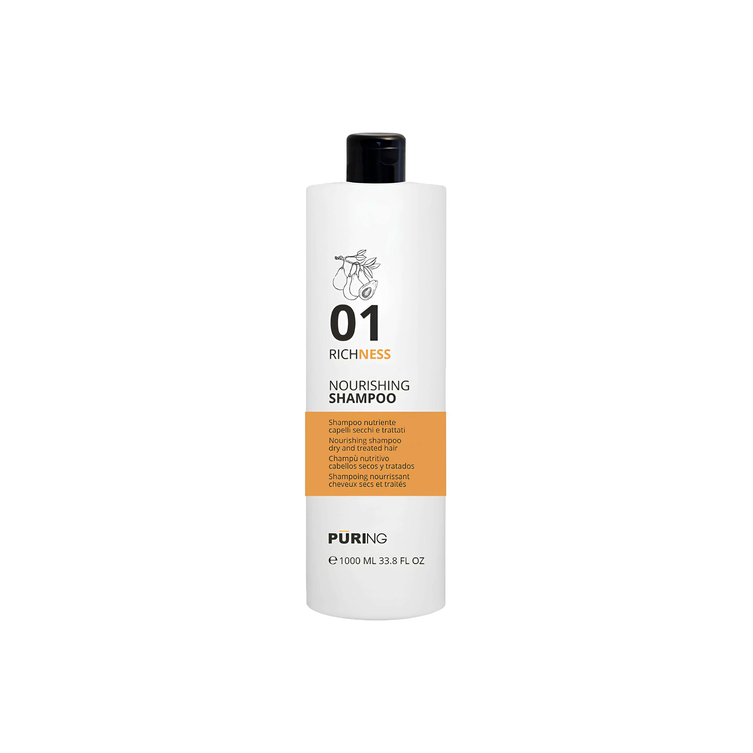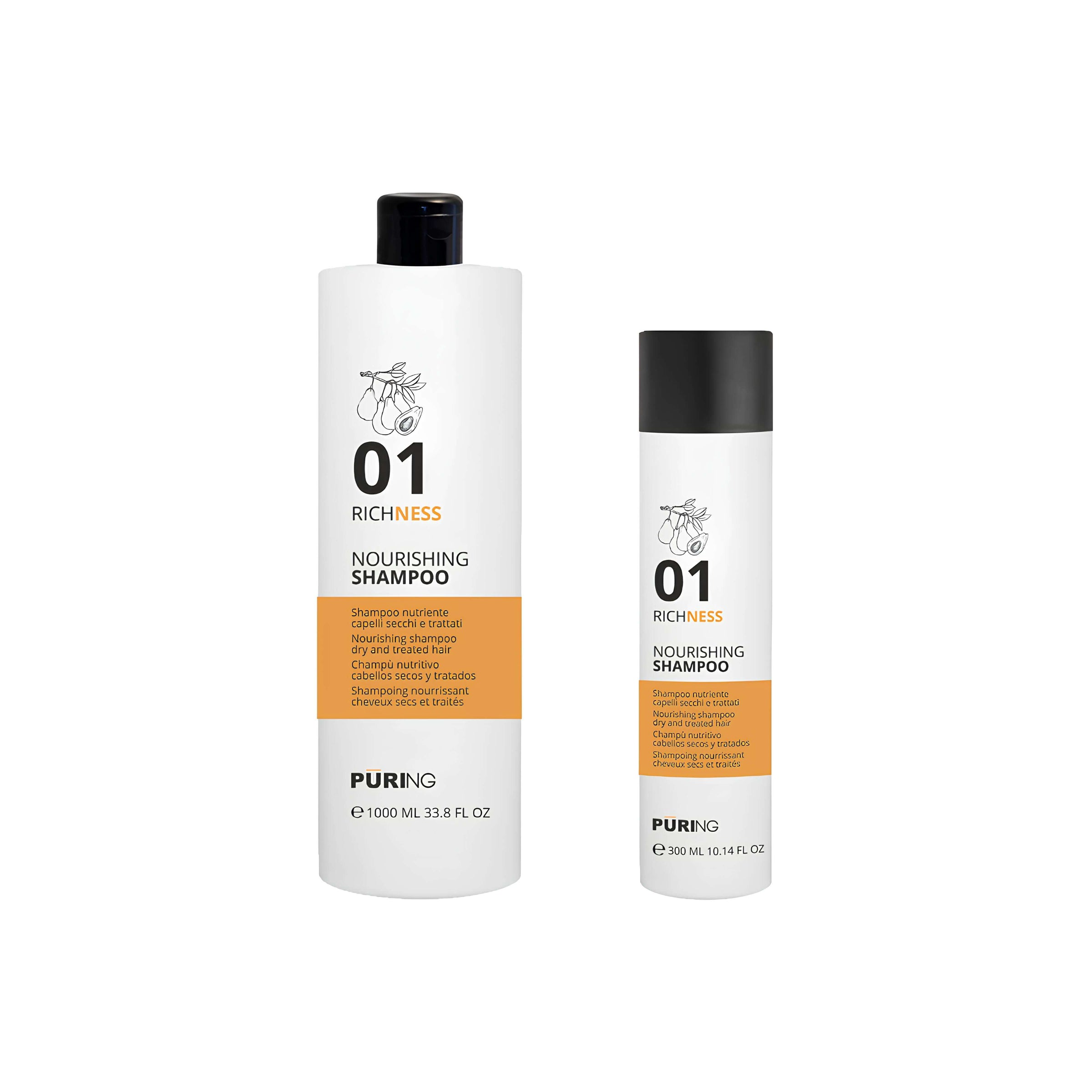 PURING Richness Nourishing Shampoo Nutriente per Capelli Secchi e Trattati, Formati da 300/1000ml e Tanica 10lt