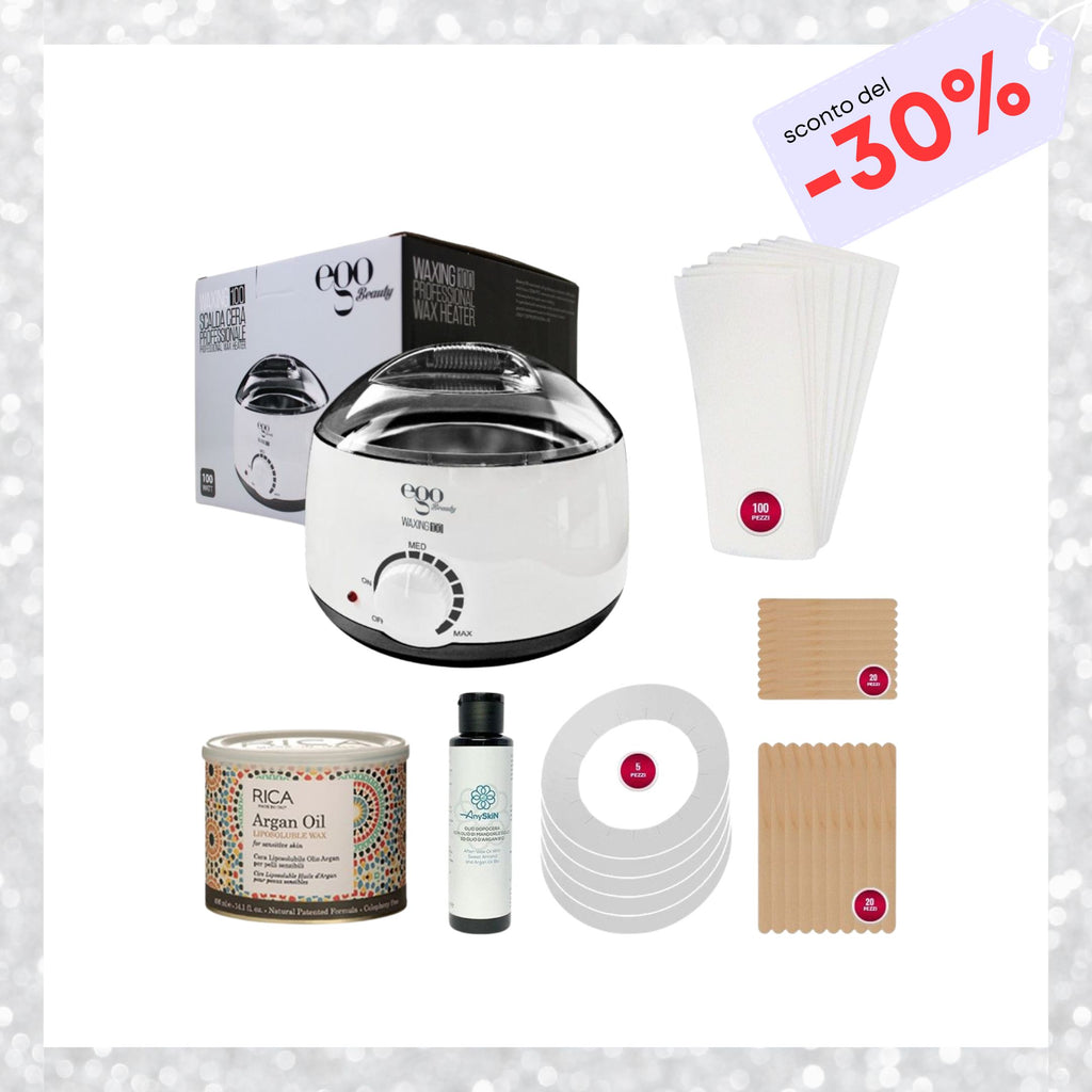 Offerta Kit Depilazione ANYSKIN con Scaldacera Rullo + 3 Ricariche + 100 Strisce + Dopocera.